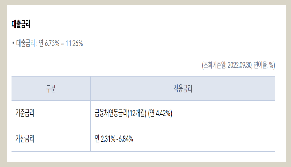 적용되는 금리는 기준금리와 가산금리가 더해져서 계산이 되고
